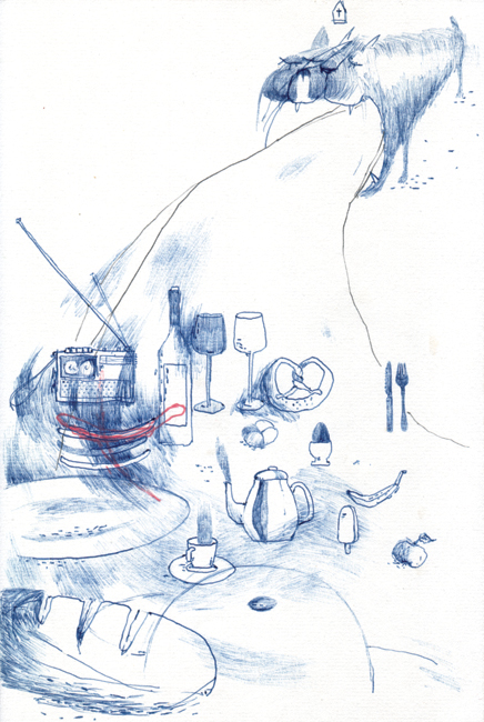 Serie von Kulizeichnungen, entstanden zwischen 1996 und 2012, in Anlehnung an ein von Pablo Picasso verfasstes Theaterstück (le désir atrappé par le queue/ Wie man Wünsche beim Schwanz packt, Paris 1941). Der dadaistisch anmutende Text ist nach der Methode der écriture automatique verfasst.